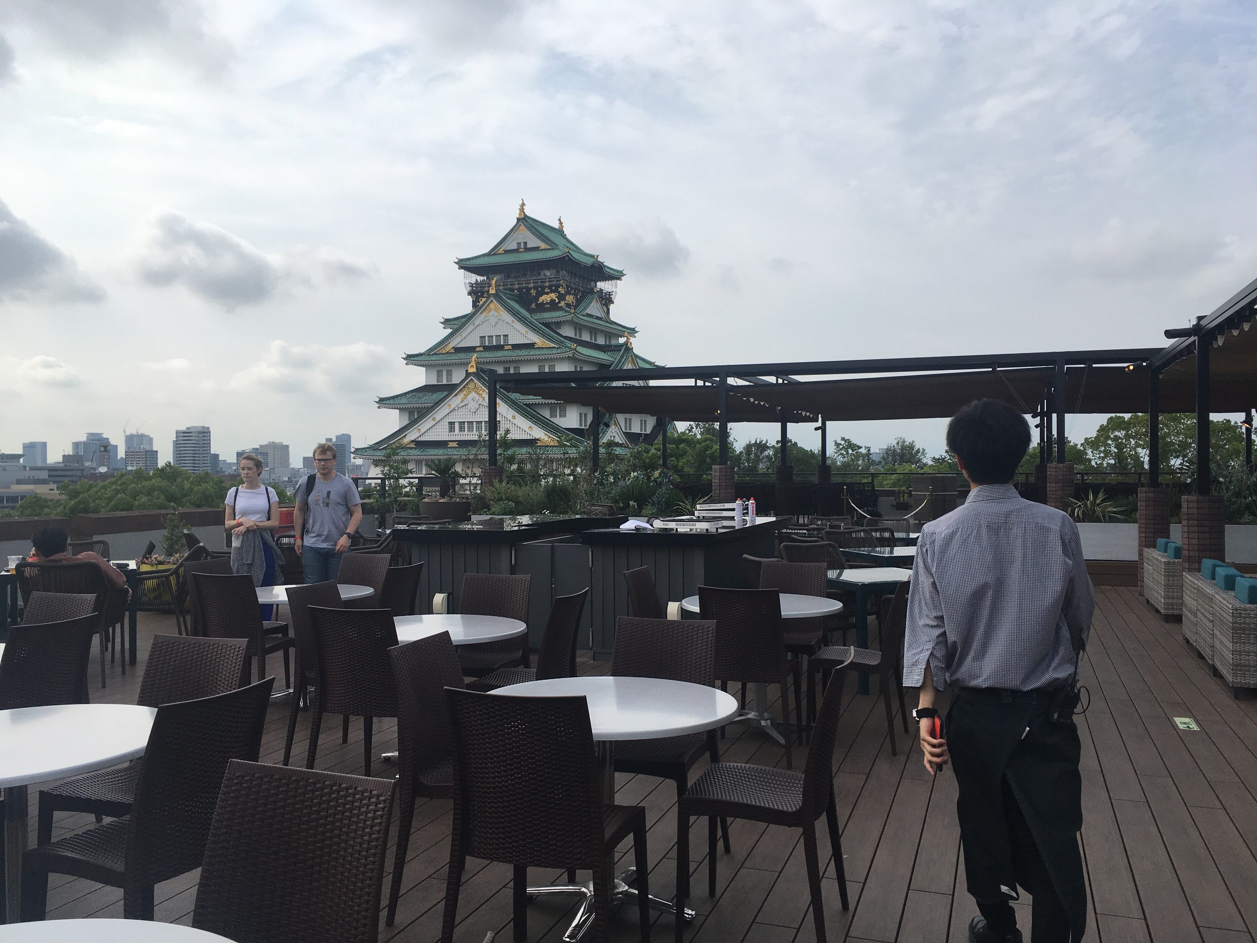 城を見ながらお酒が飲めちゃういい感じのデッキが!!