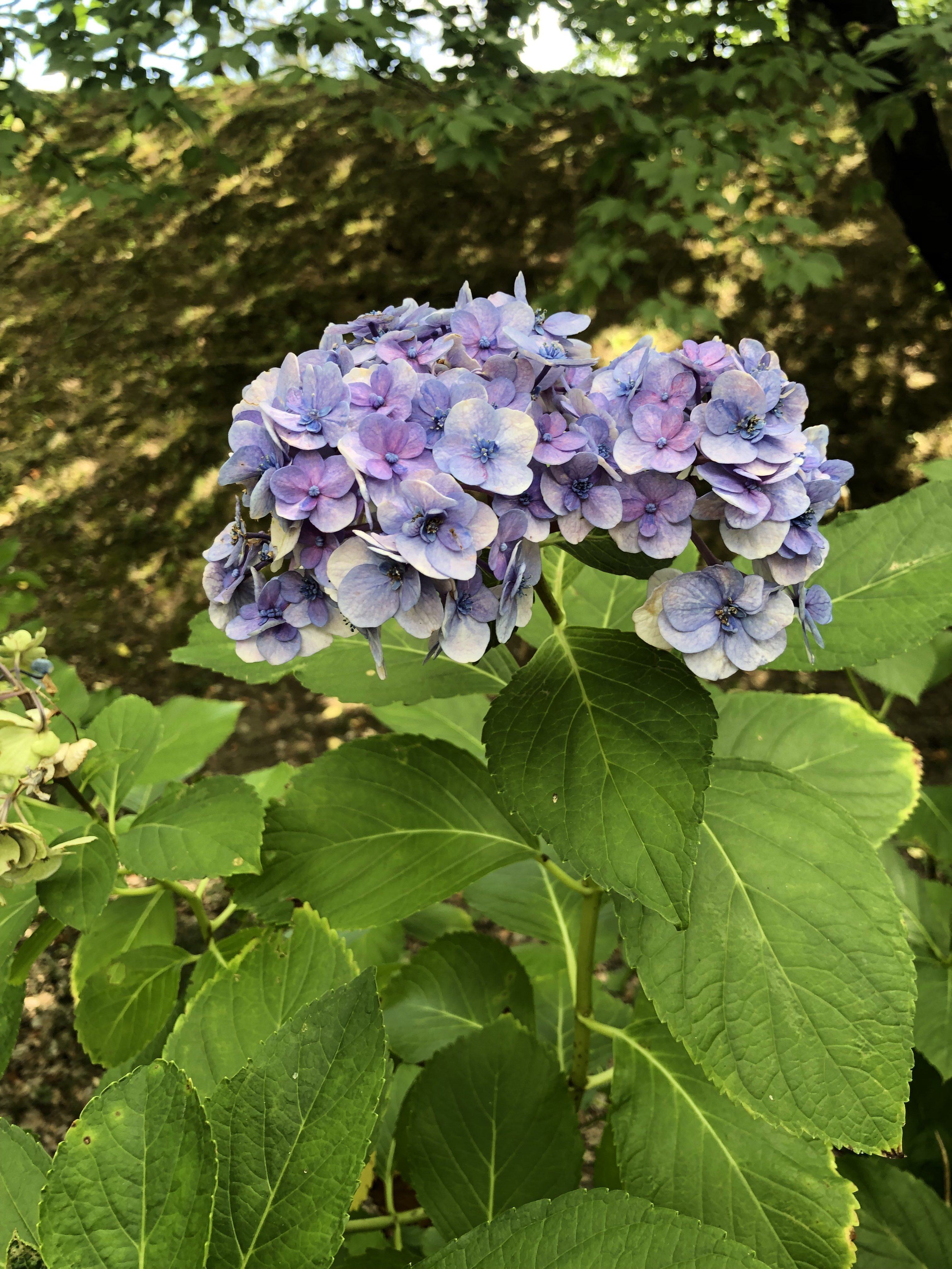 そんな木陰ゾーンには、8月にもかかわらず鮮やかな色で咲くアジサイが。
