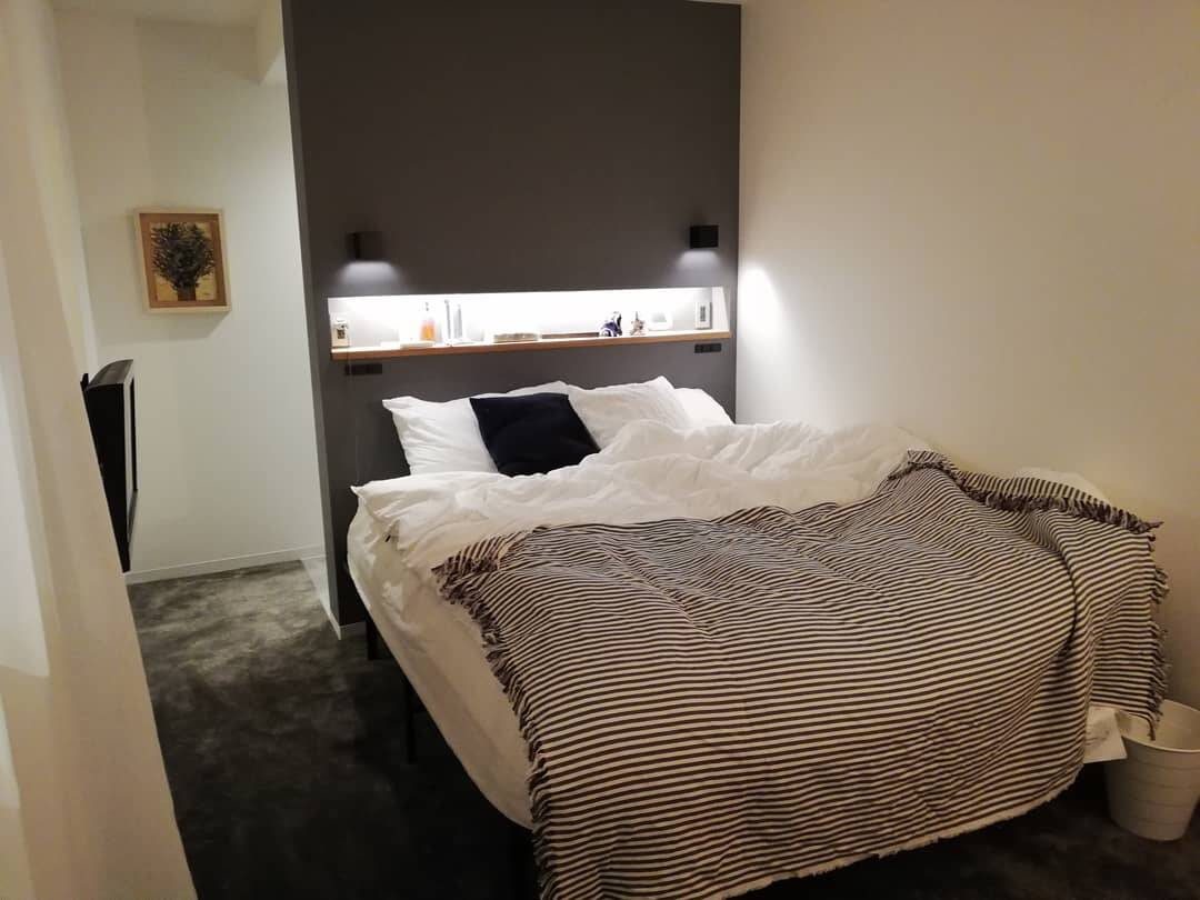 間接照明のみにした寝室。