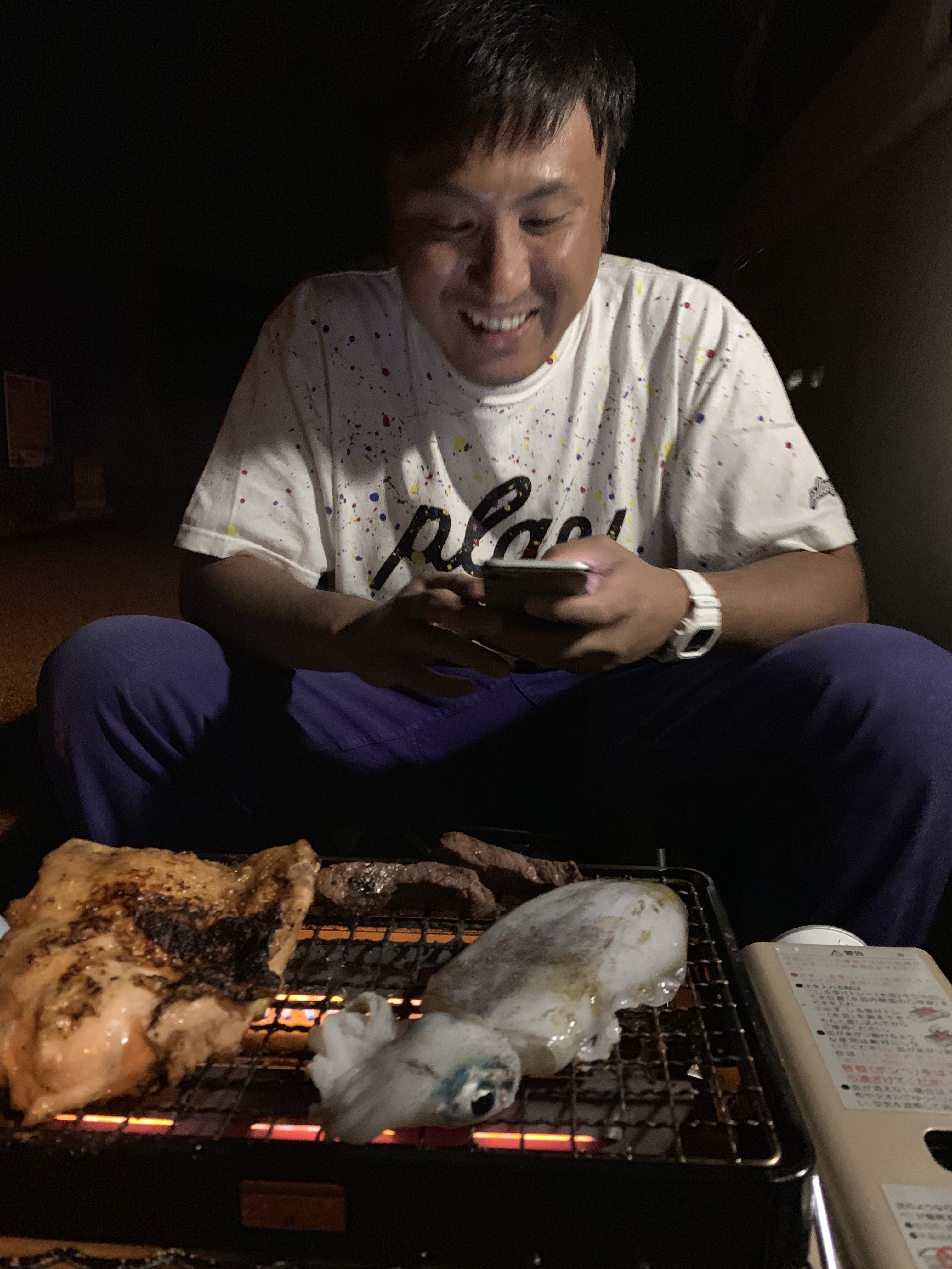 波は胸肩サイズのめちゃめちゃいい波で初日を終え、温泉からのBBQ
