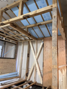 こちらは耐震・断熱ブースの組み立て中の写真。