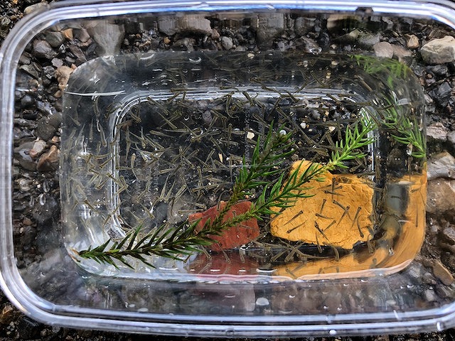 あみで1すくいで10匹ほどどれます