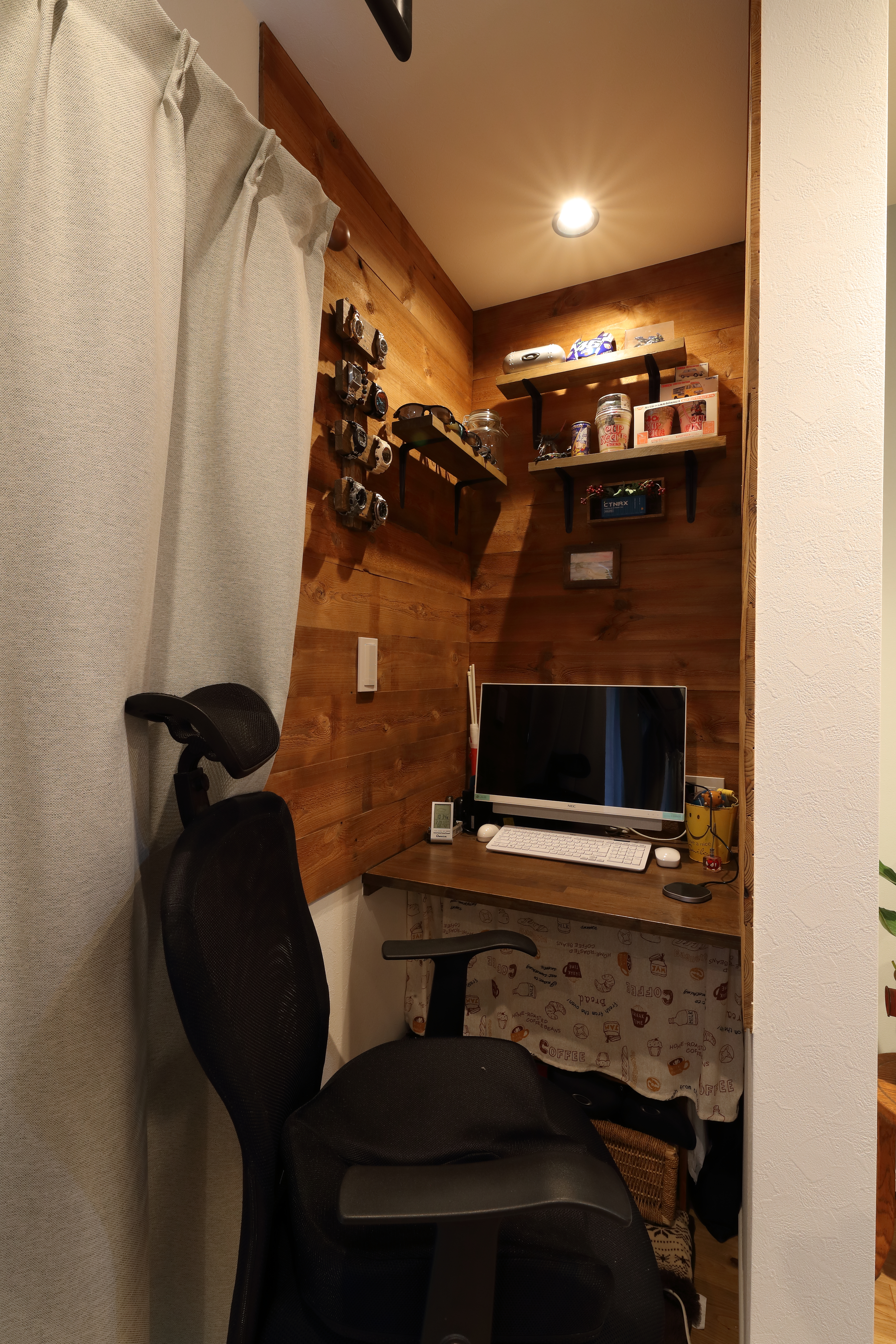 ご主人様:書斎ですね。以前はパソコンをする場所がバラバラでその都度移動しなければいけなかったんですが、今回専用の書斎ができたのでとても気に入ってます。時計が好きでいっぱいディスプレイしました。