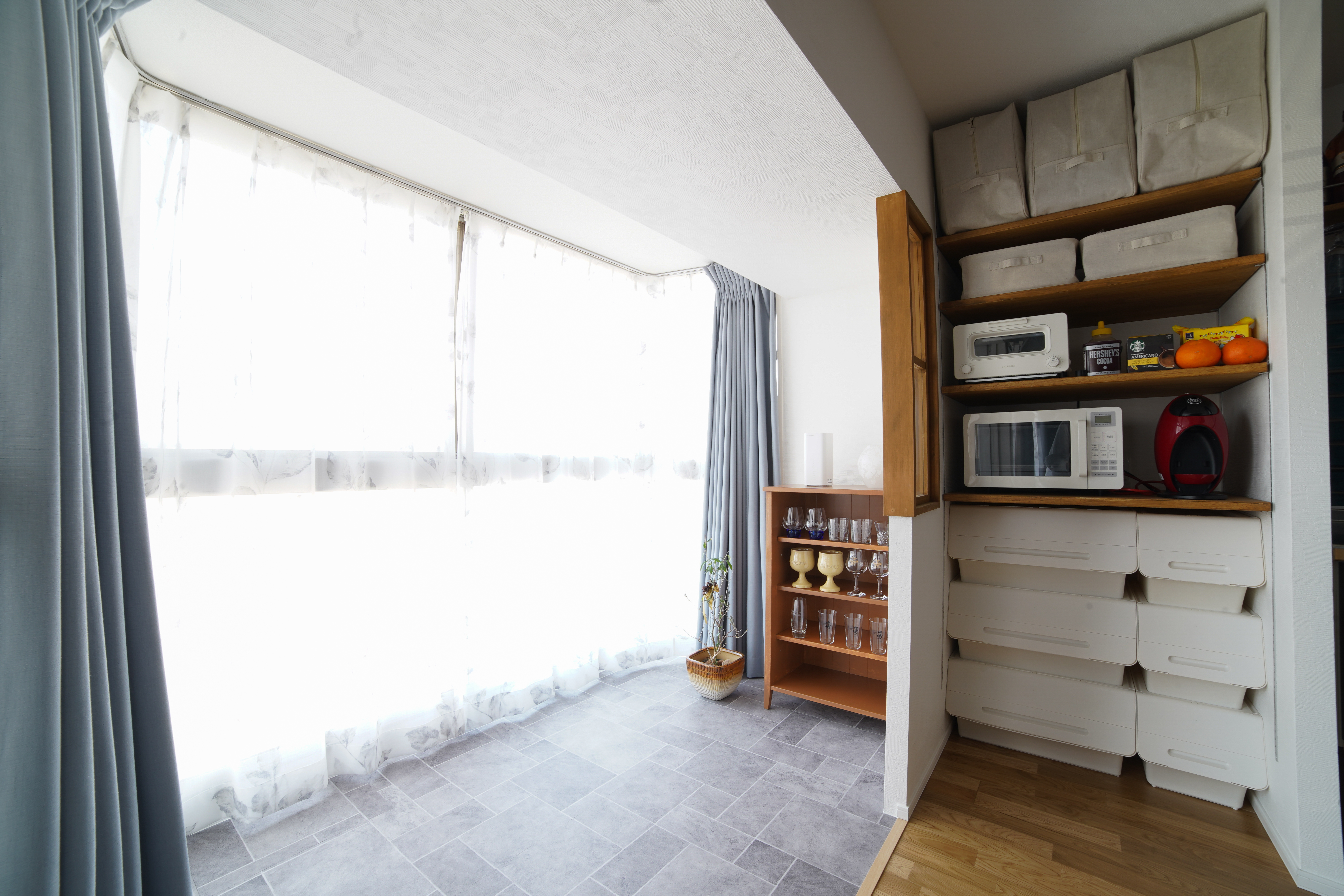 暖かくなったら出窓のスペースを活用して、晩酌しながら窓からの景色を楽しみたいです。
