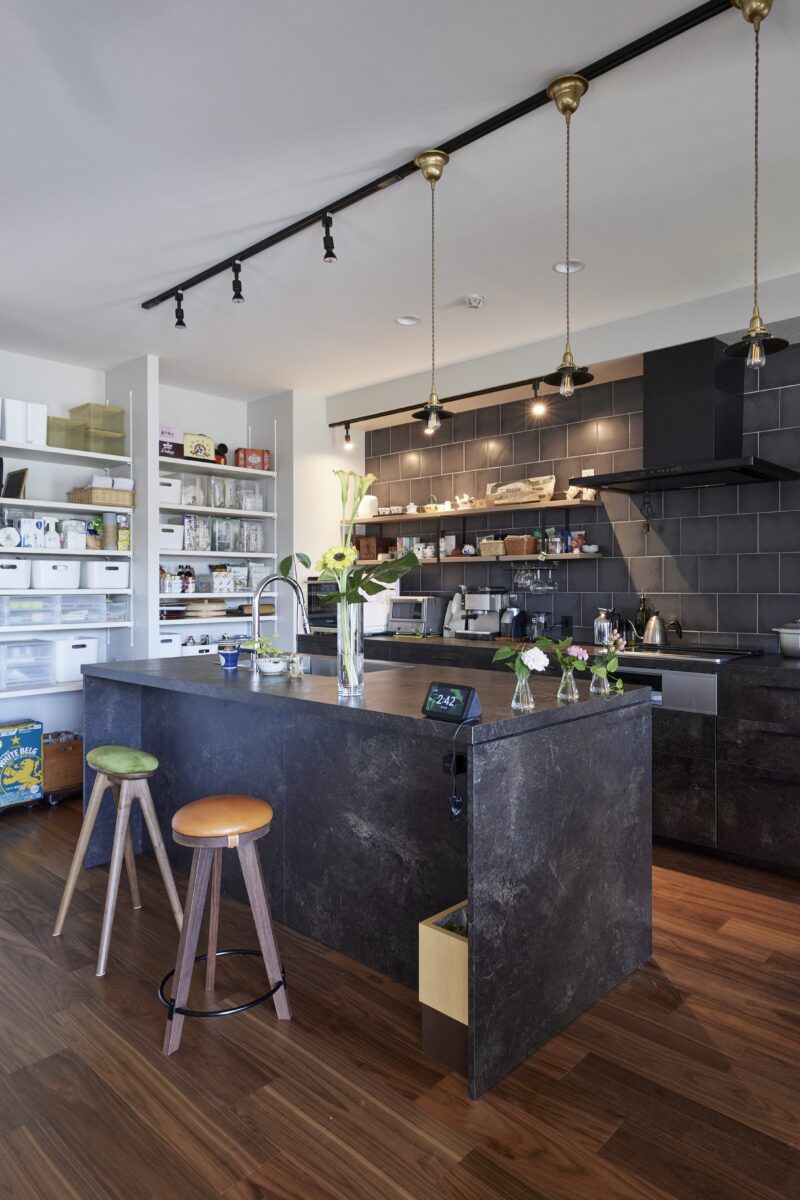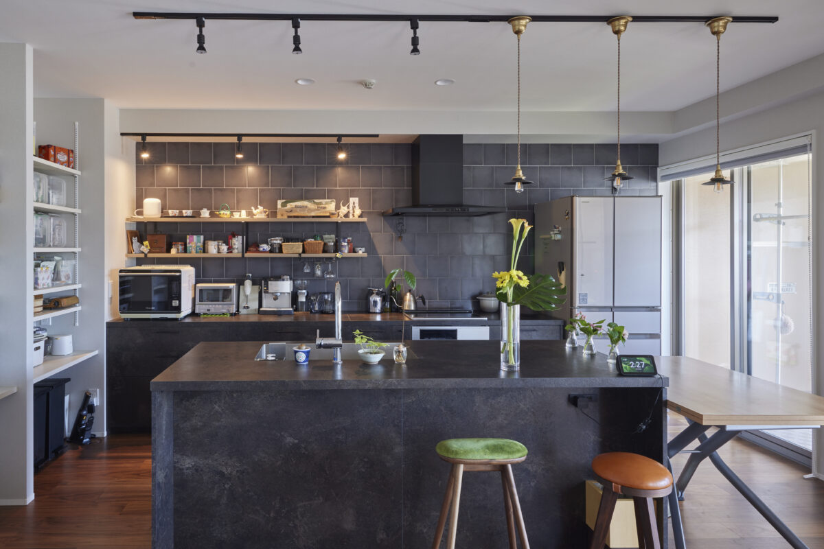 選んだのは、おふたりがとことん惚れこんだ「グラフテクト」の二列型キッチン。