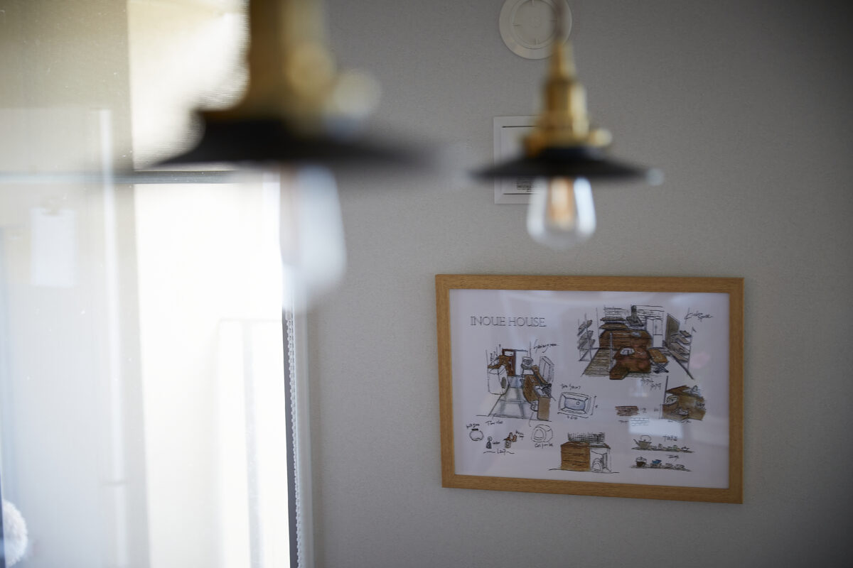 お気に入りのキッチンの側に掛けられている額縁。実はこれ、プランナーがおふたりにお渡ししたデザイン提案書。
