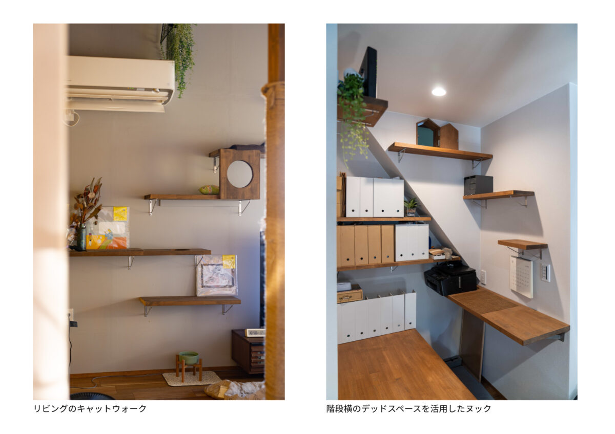 また壁付けキャットウォークや階段横のデッドスペースを活用したヌックも、プランナーから提案させていただきました。