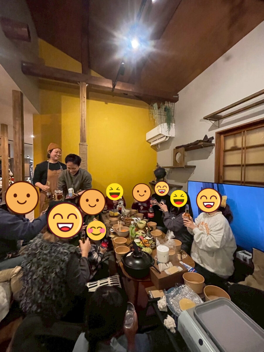 お二人がおいしい料理でもてなし、みんなで完成した家を楽しむひとときを過ごしました。